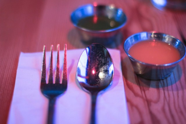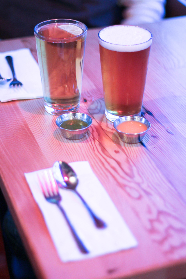 Luke had sent me a link for Teote a few months back. It looked delicious so we added it to our ever growing list of Portland restaurants we want to try. A few weekends ago, after a long afternoon of house cleaning, we cleaned ourselves up and ventured over to Teote for dinner. Just walking up the street to this place you can’t help but get excited at the sight of all the bright blues, yellows and oranges that decorate the outside of the restaurant. We placed our order at the front counter and then made our way upstairs to grab a table, a cute little romantic table tucked away by the upstairs corner window.