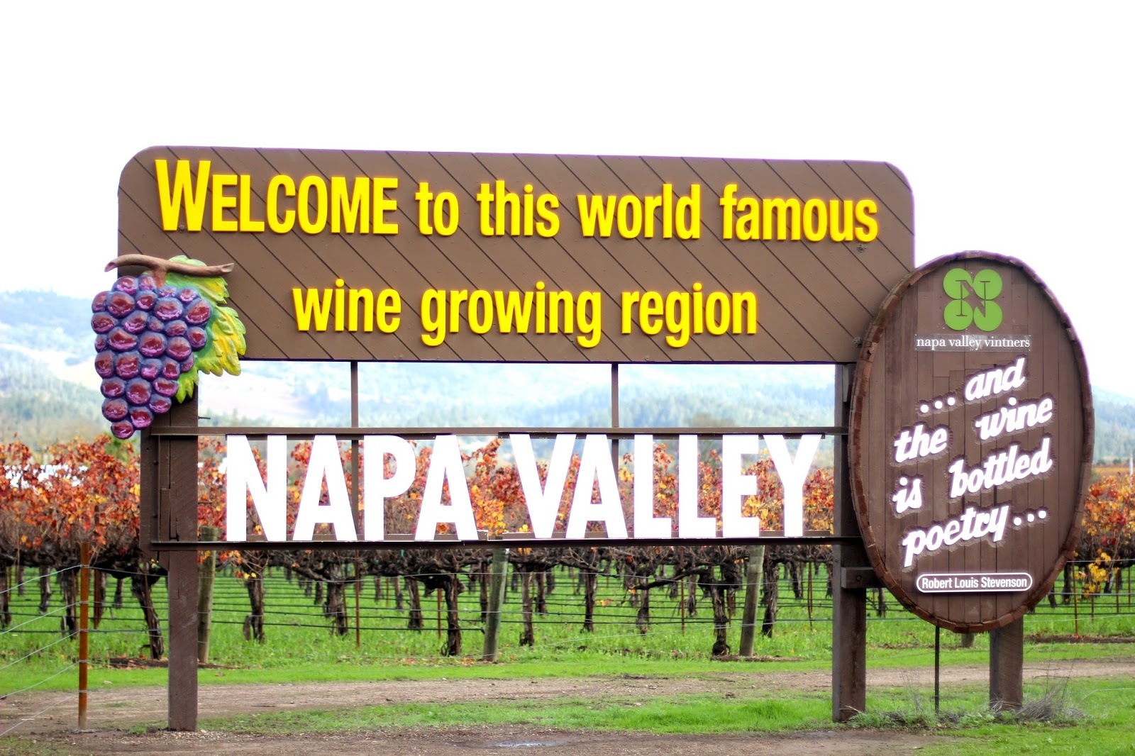 Last month Luke and I flew down to California wine country for a long weekend. Other than driving past a few times, this was our first time really exploring the area (and definitely won’t be our last…). On our first day in wine country we spent a good part of the day exploring in the Napa Valley. We started off with a yummy lunch in downtown Napa and then worked our way up north to stop by a few wineries. With temps in the mid-60’s a a few sun breaks, we were feeling pretty lucky with the weather (Oregonians have low weather expectations, haha).