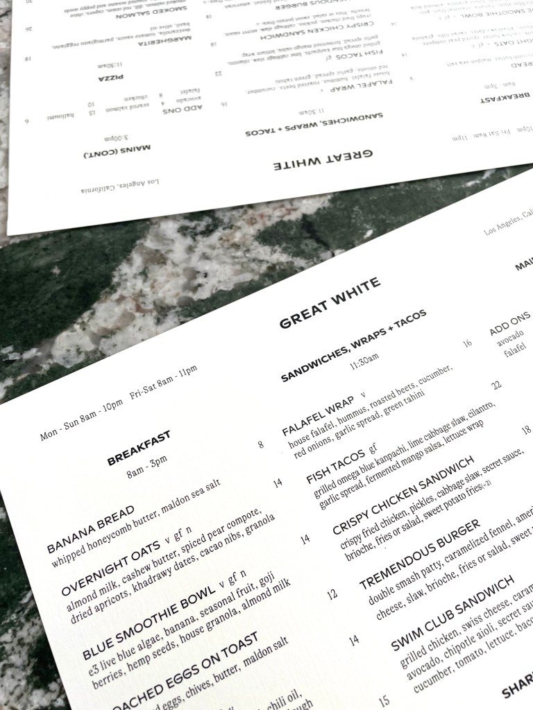 Luke and I were recently down in LA for an extended weekend. Every time we find ourselves in the area we’re always on the hunt for new and fun spots to eat. On this particular trip I found (and fell in love with) Great White. They recently opened a second location on Larchmont, but we opted for their original location in Venice for a morning breakfast. Great White serves breakfast, lunch and dinner – so it’s basically an all day cafe. When I was reviewing their menu and photos of their restaurant ahead of our visit I was sensing some strong Aussie vibes. And if you know anything about an Aussie breakfast, you know it’s going to be good.